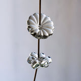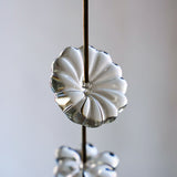 こちらは一つ一つ手作業で作られたガラスの花をワイヤーと真鍮で繋げた吊り下げ飾りです。