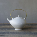 ●22-TS25 白釉 真ちゅうハンドル 土瓶