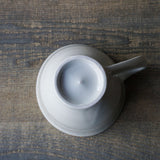 わずかに青みを帯びた白磁が美しいマグカップ。