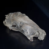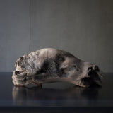 本作品では、流木の自然の形を生かして動物の頭を表現しています。
