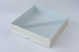 白磁の重箱に銀箔を貼って仕上げている華やかな重箱。