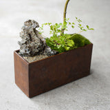 2種の植物の柔らかなラインと錆加工のアイアン鉢が調和した、味わい深い景色をぜひお愉しみください。