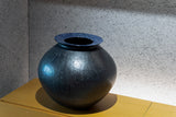 ●22-TM34 眞喜屋修 黒釉ライン壺 大