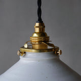 ※本体(白磁シェード)と吊り金具(真鍮製ギャラリー)の固定にはビスを用いています。ビスに緩みがあると本体落下の原因になるため、使い始める前に最後まで締まっているか必ずご確認ください。また定期的に締め直しを行ってください。
