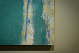カラーテーマである「AQUA MARIN」の色合いを基調とし、ハタノさんの代表作「窓からの風景」に描き出しました。